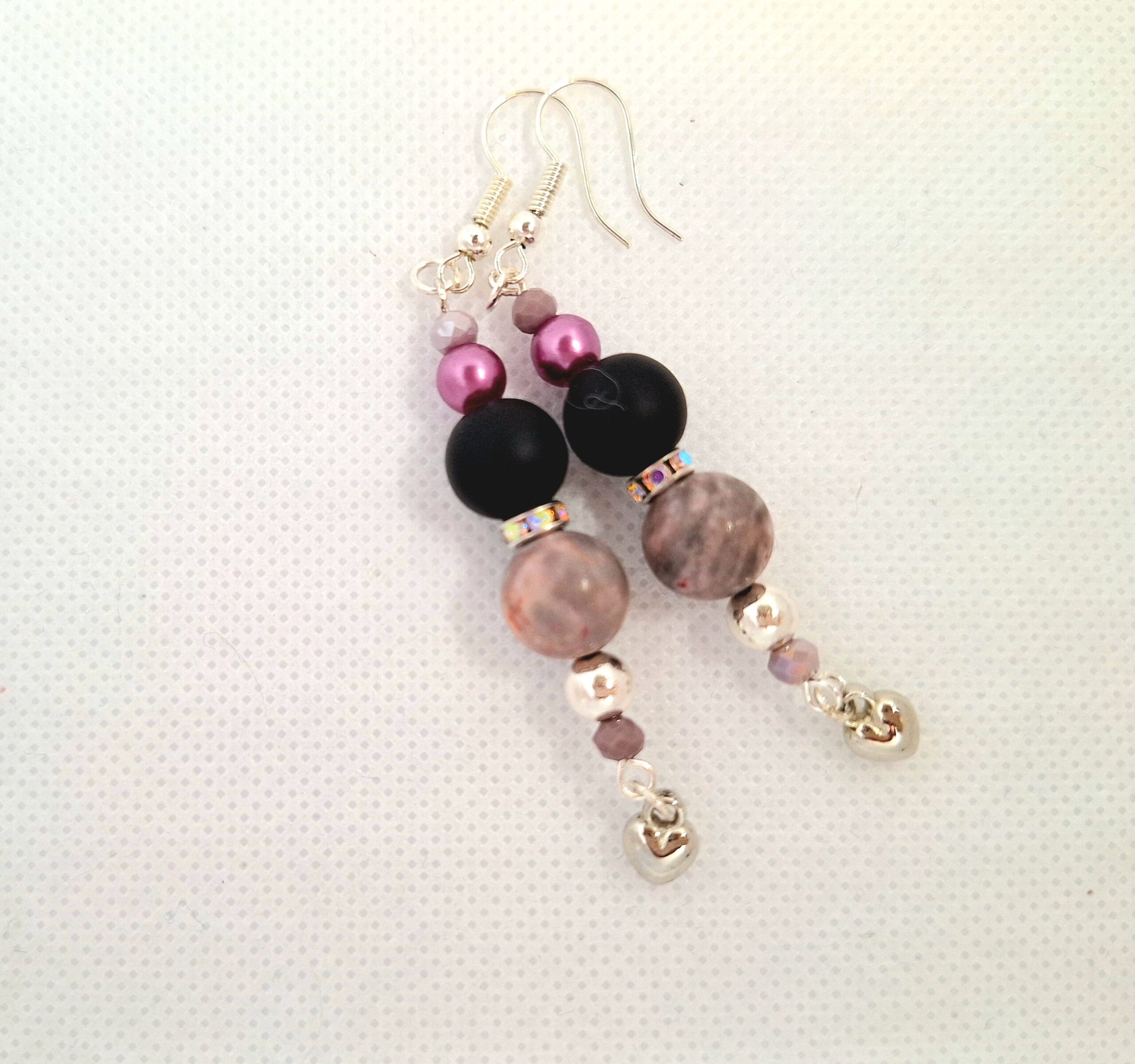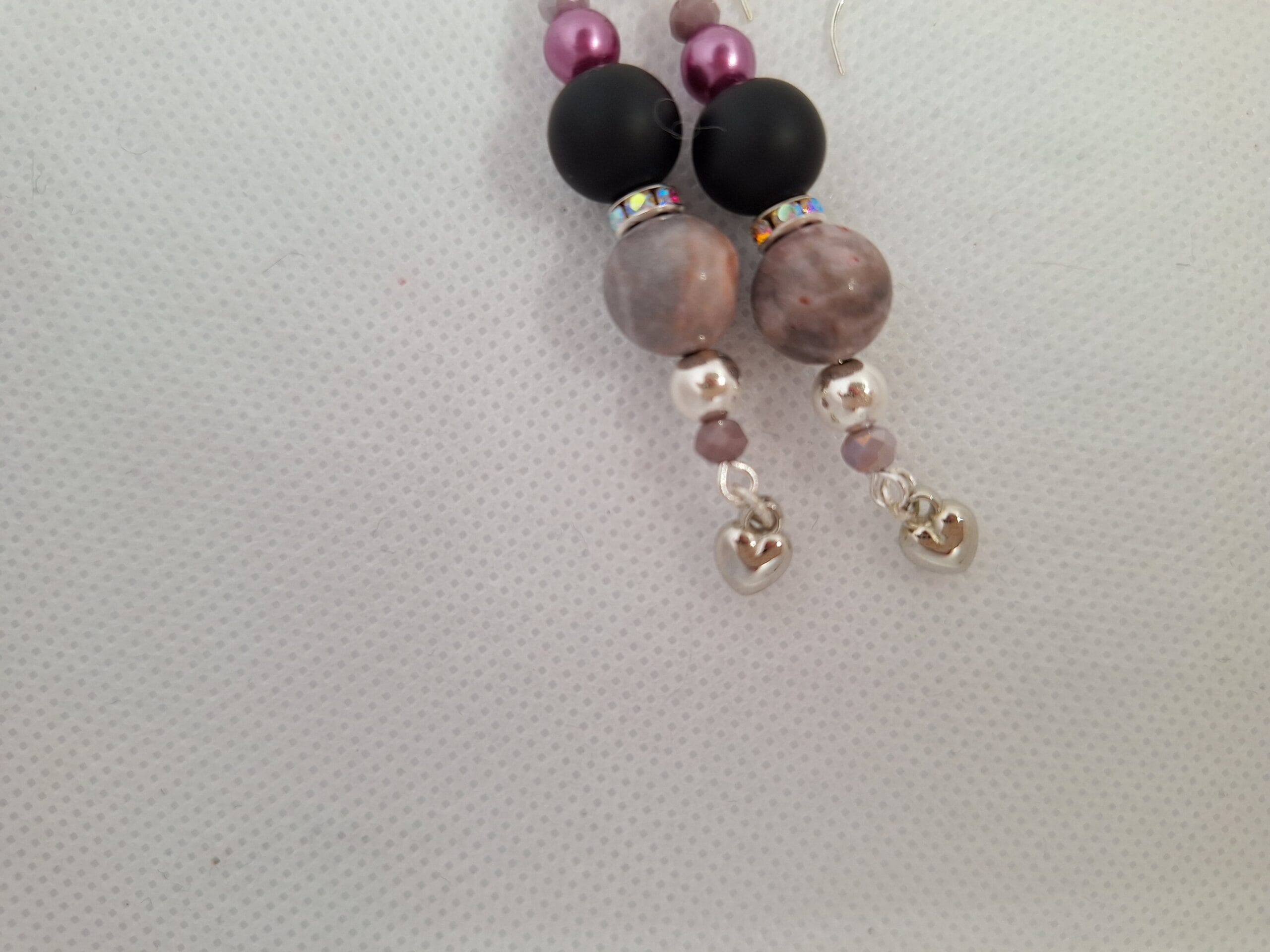 - Productinformatie: Geluks- oorbellen zilverkleurig, paars, hart