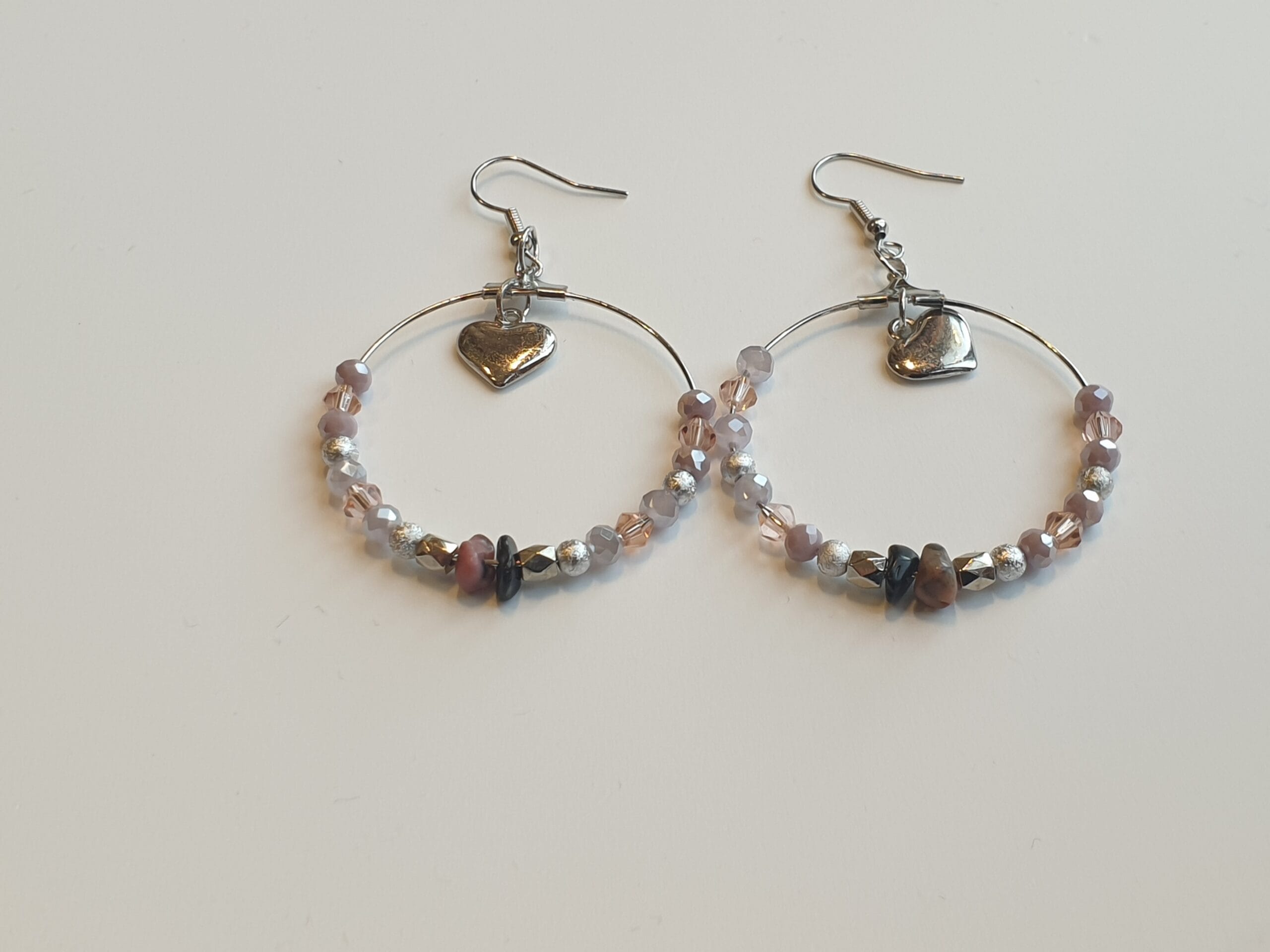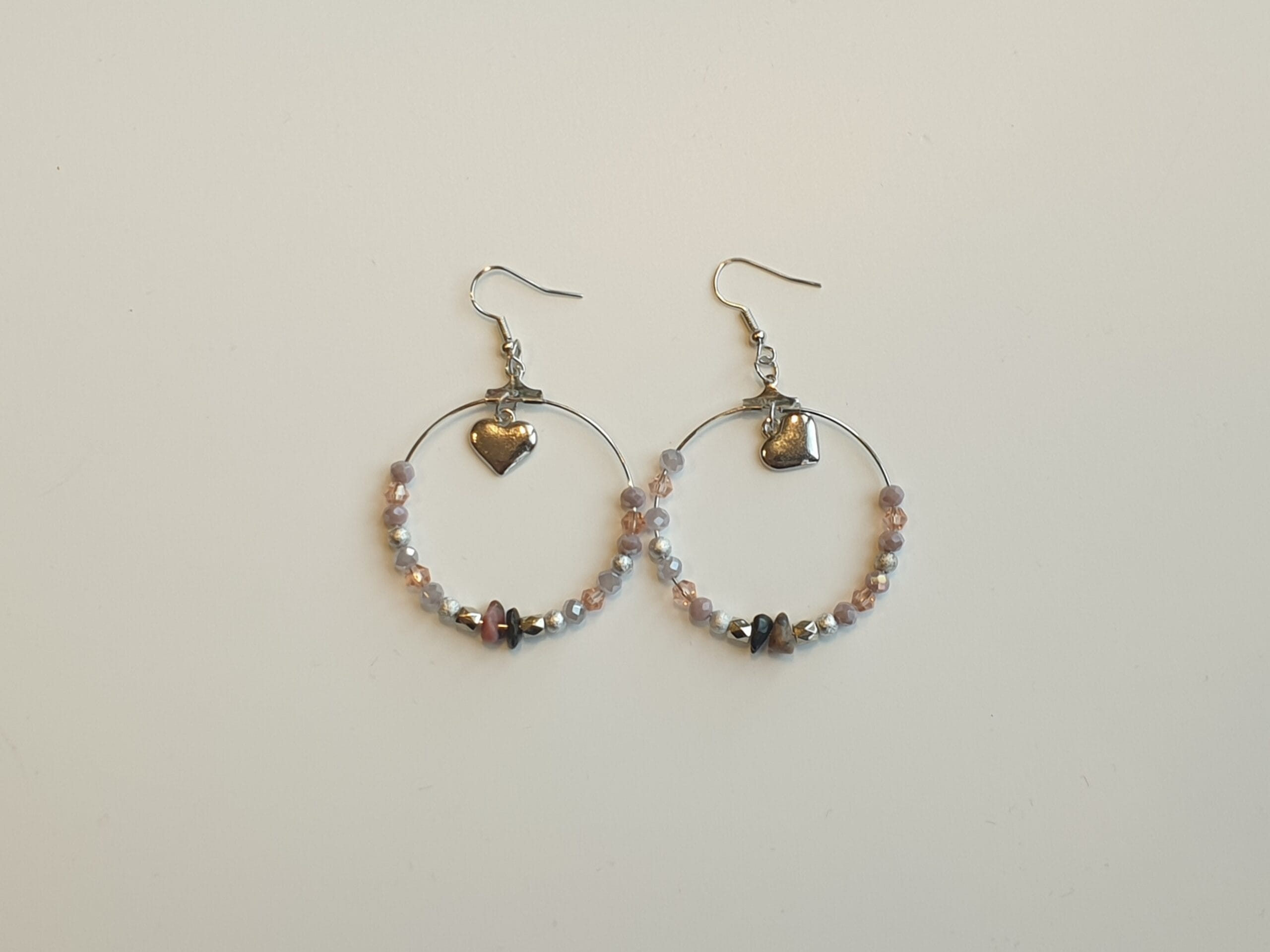 Oorbellen geluk Zilverkleurig/Grijs en pasteltinten hart